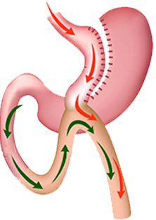 El bypass gástrico en y de roux laparoscópico, es una técnica mixta, es decir genera restricción y malabasorcion. En la misma se confecciona un pequeño estómago de aprox 30 ml de capacidad , que se conecta directamente al intestino delgado. De esta manera la comida salta (by pass) un gran segmento de intestino y se disminuye con ello la absorción calórica y de nutrientes. Además, debido al reducido tamaño de la porción de estómago que se deja, se reduce la cantidad de comida que Ud. puede comer.